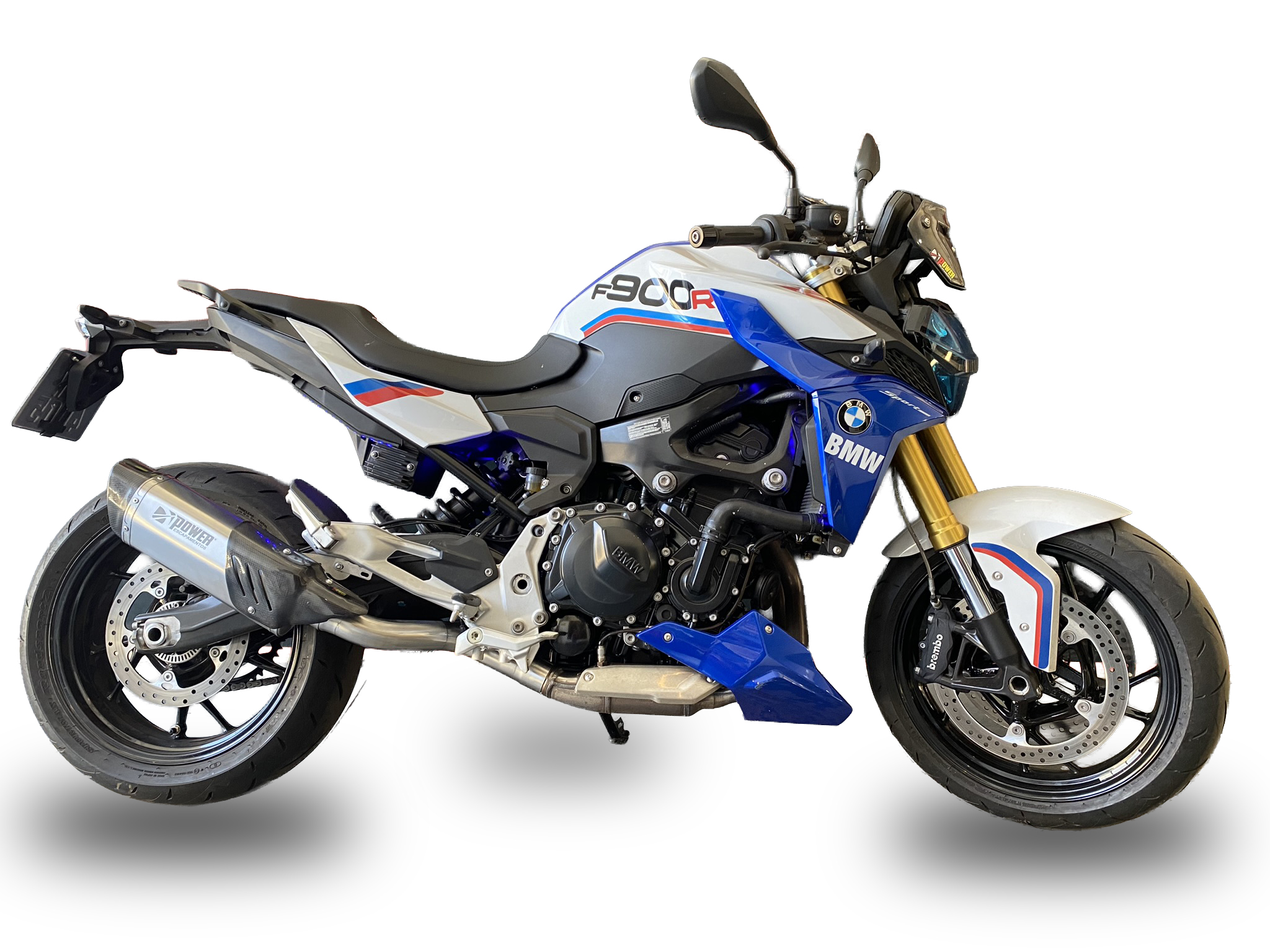 Escapamento Power com Ponteira modelo PW21 em aço INOX e bico em Fibra de Carbono + Link em Inox para BMW F900
